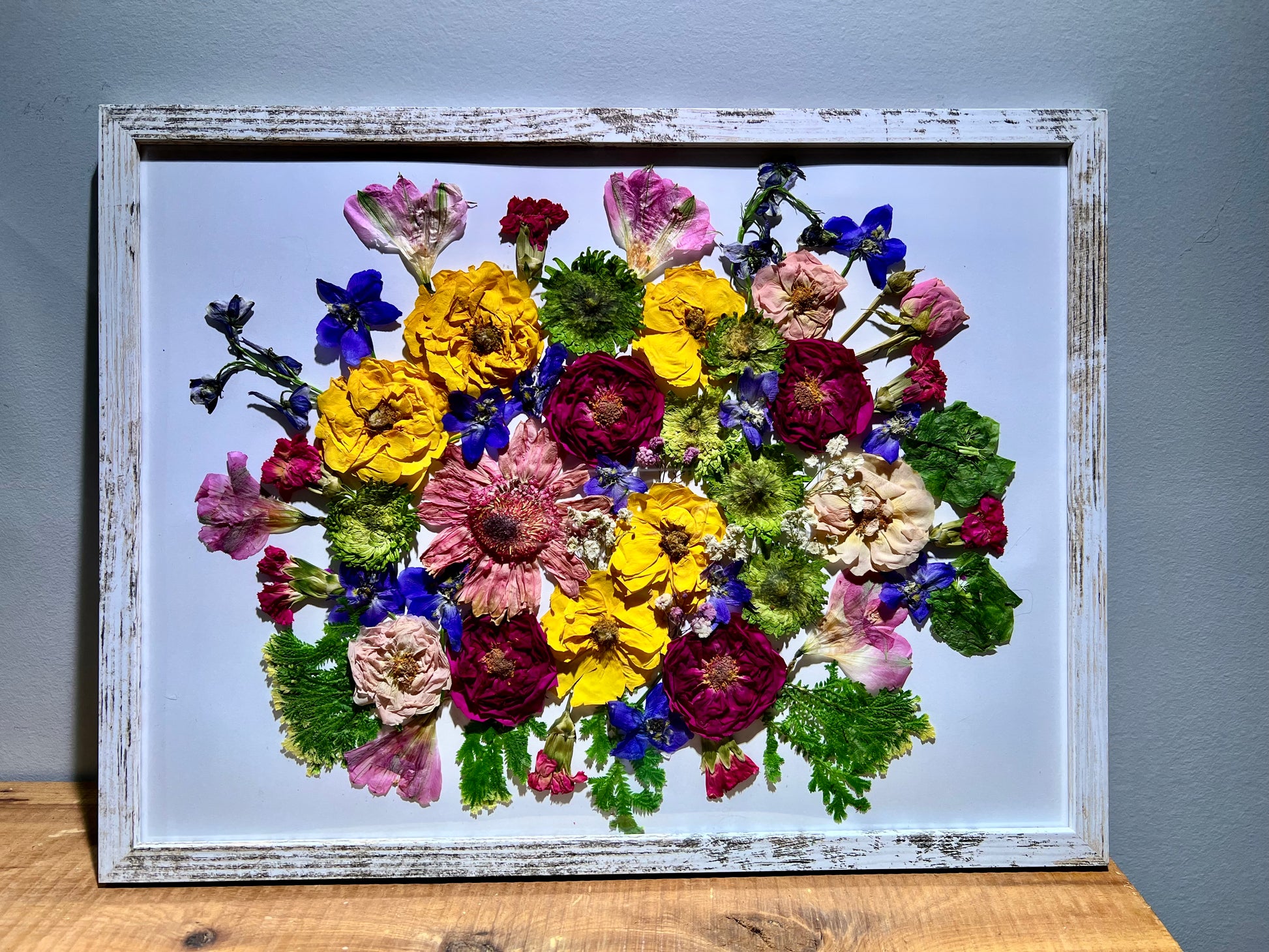 Pressed flower art in 12“ x 16“ frame