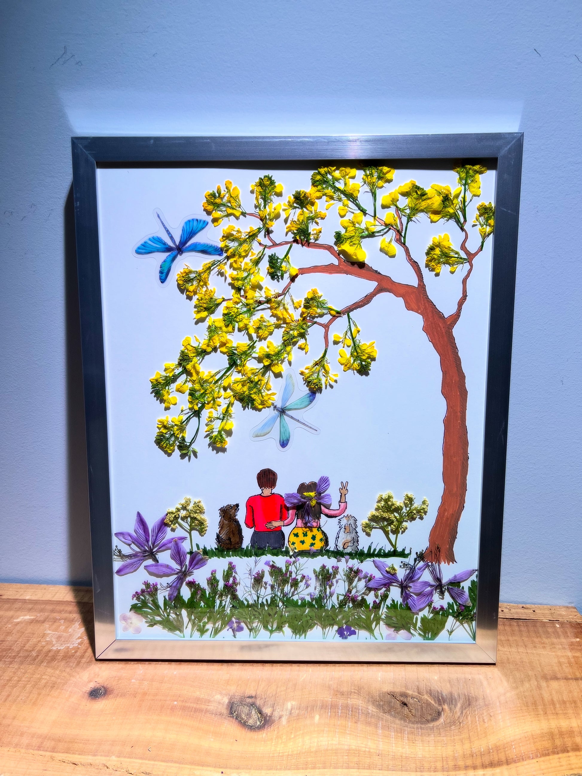 Pressed flower art in 10“ x 14” frame