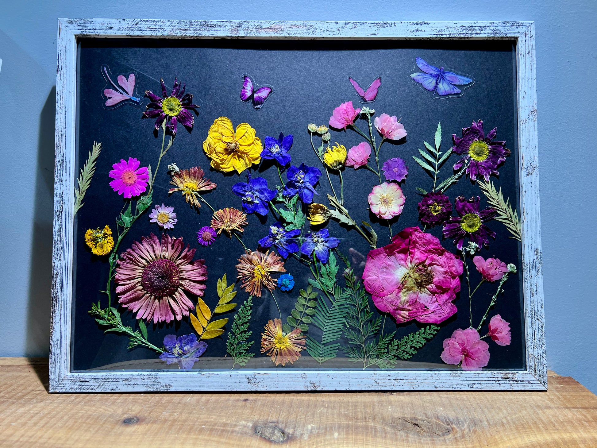 Pressed flower art in 12” x 16” frame