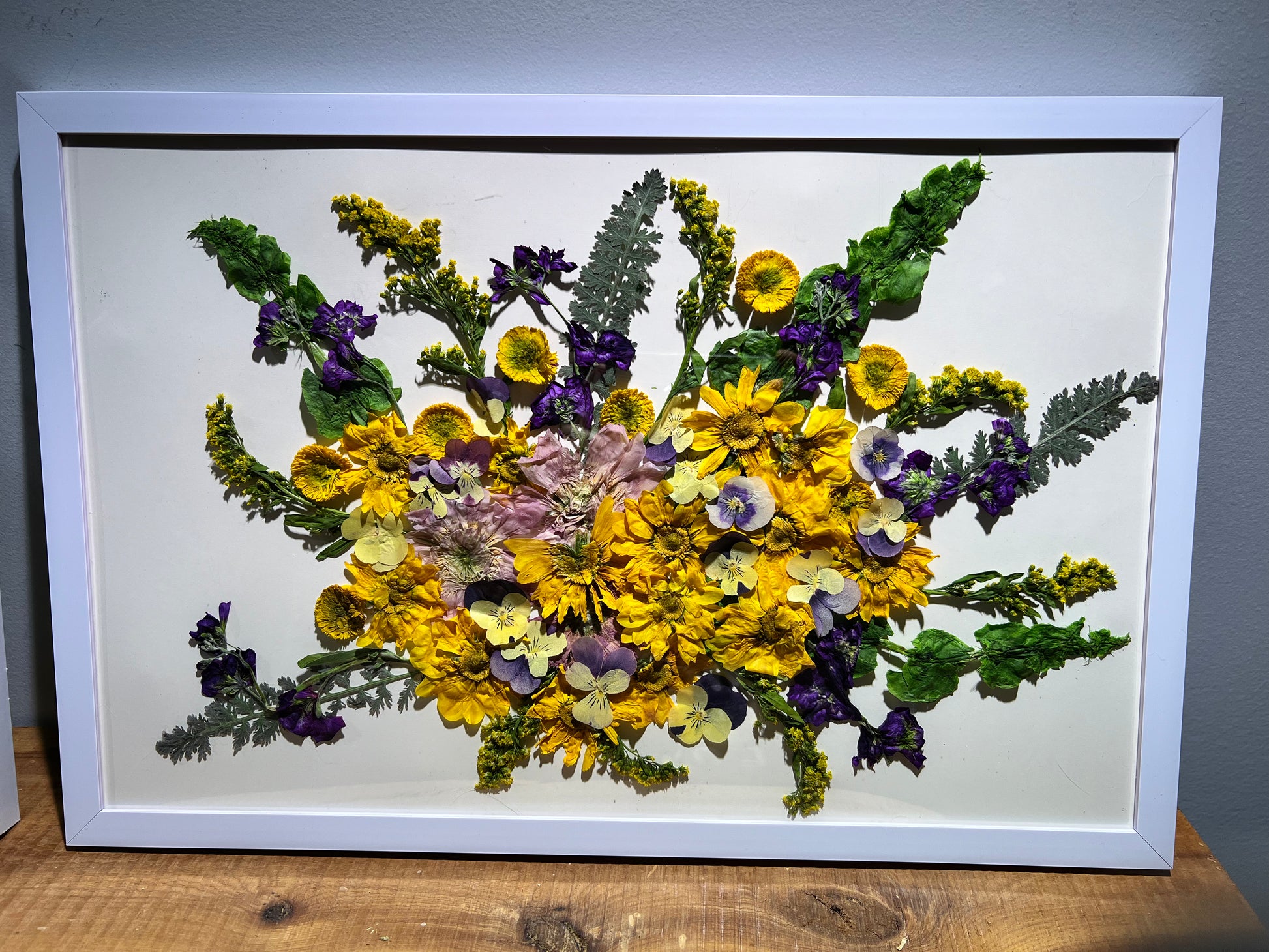 Pressed flower art in 11 in x 17 in frame